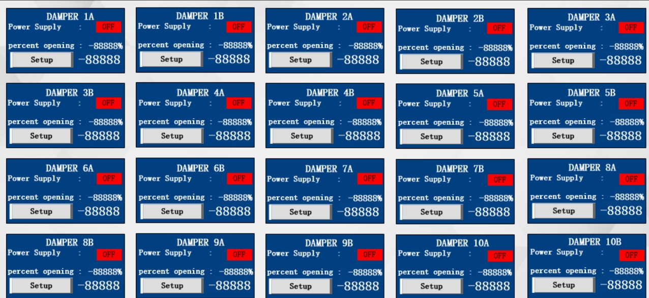 Program Sistem HVAC untuk Pengontrolan 20 Damper di 2 zona dengan pengaturan manual dan otomatis serta pengaturan sudut bukaan.